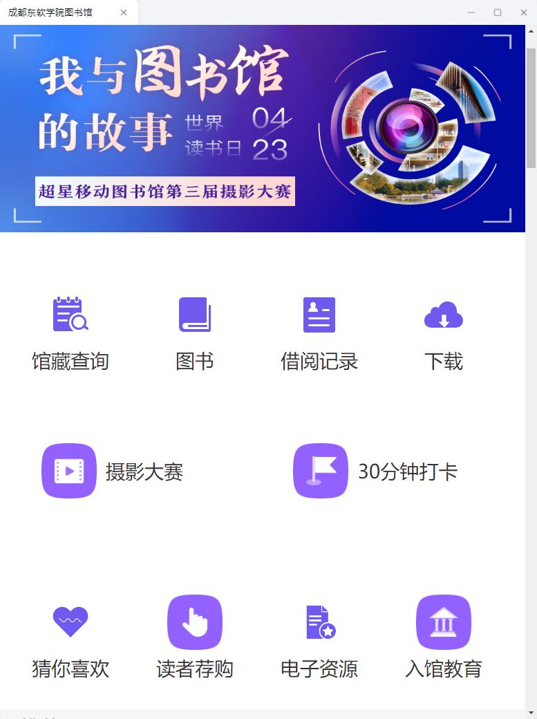 超星移动图书馆是超星公司推出的移动阅读平台,拥有海量的电子书、期刊、报纸、视频等资源。与图书馆图书管理系统连通,支持馆藏查询、借阅记录查询等。