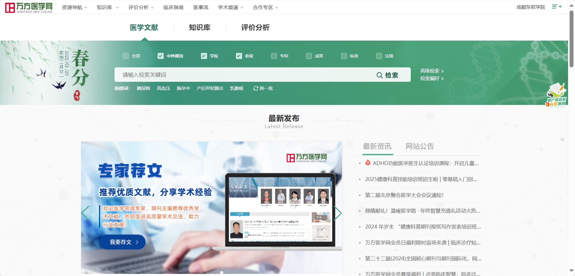 万方医学网是万方数据旗下专注于医学领域的知识服务平台,涵盖基础医学、临床医学、药学、中医学等多个学科领域。