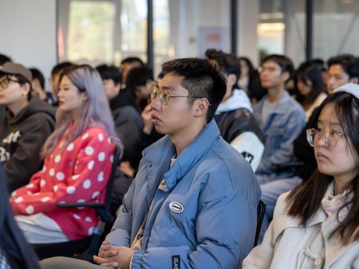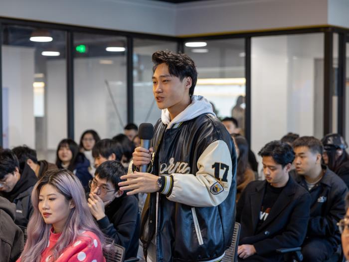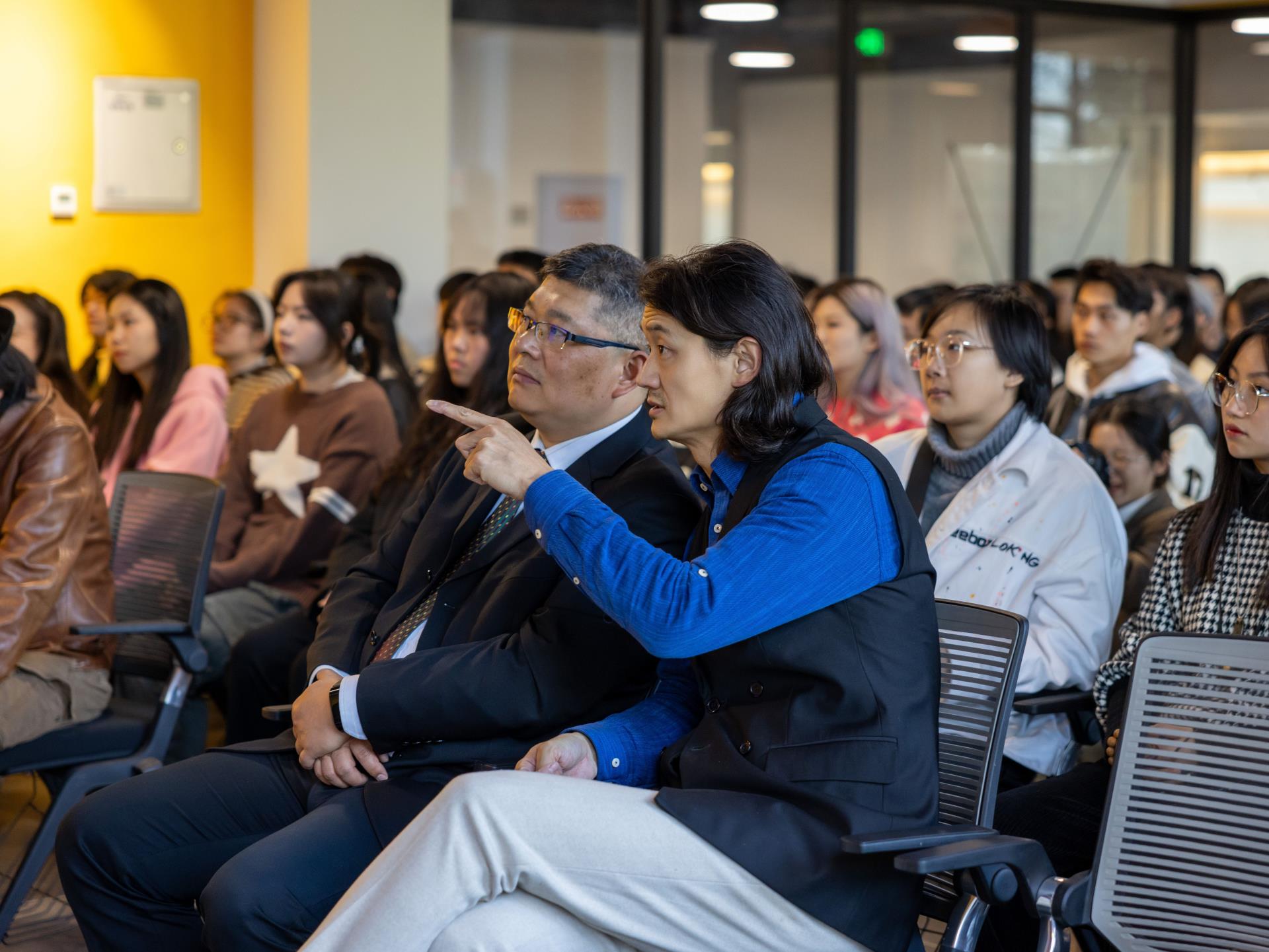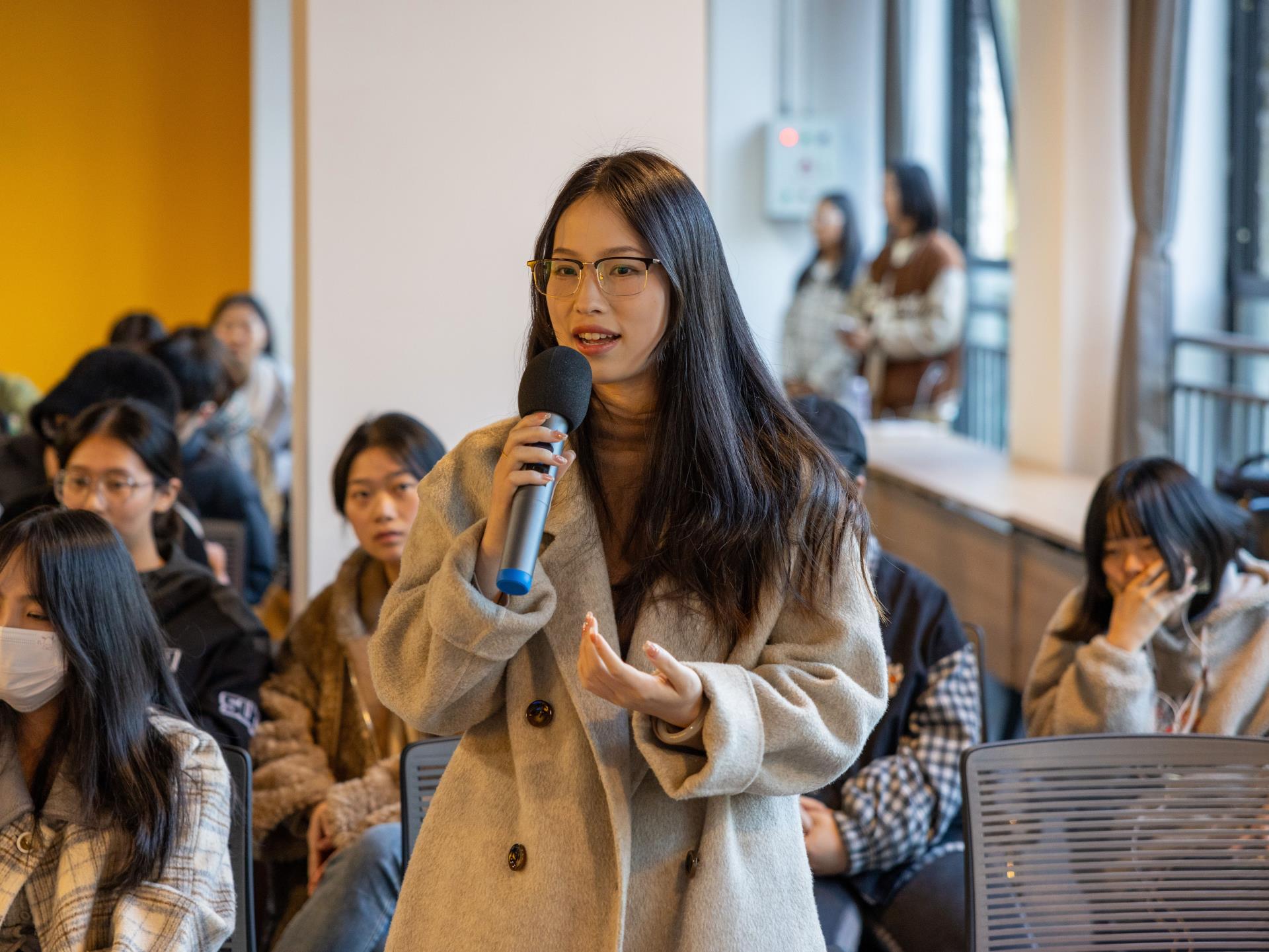 聆听了几位老师们的分享、交流,同学们对艺术创作充满热情,不断地向老师们提出问题。同学们积极请教,老师们用心解答,过程中掌声不停、情绪高涨。有五位同学还获得了非常珍贵的粘贴着三件艺术品高清照片并有主创老师亲笔签名的校庆定制笔记