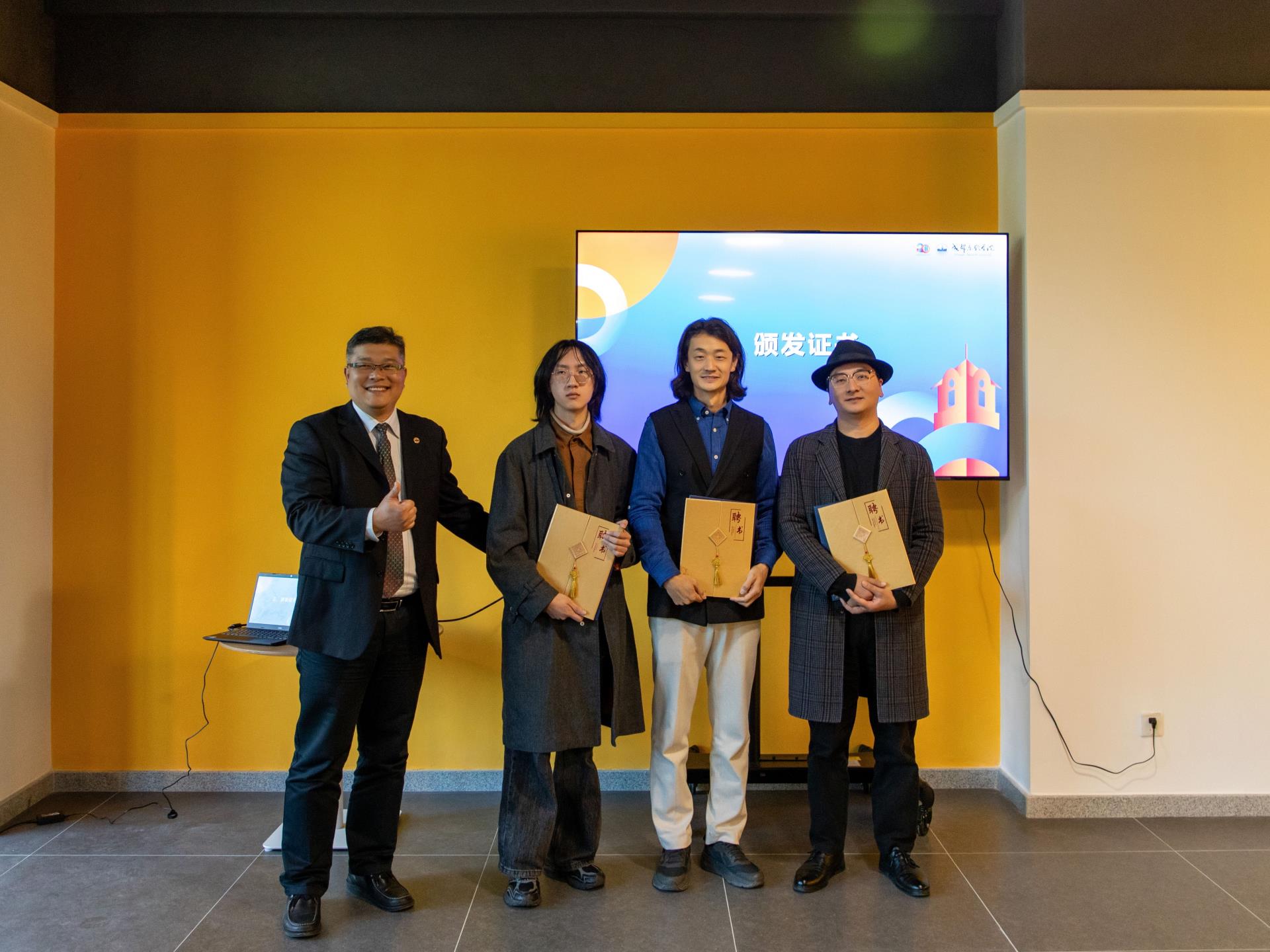 巨馆长代表学校为主创老师颁发了收藏证书和荣誉馆员证书。