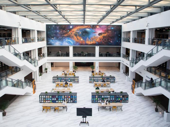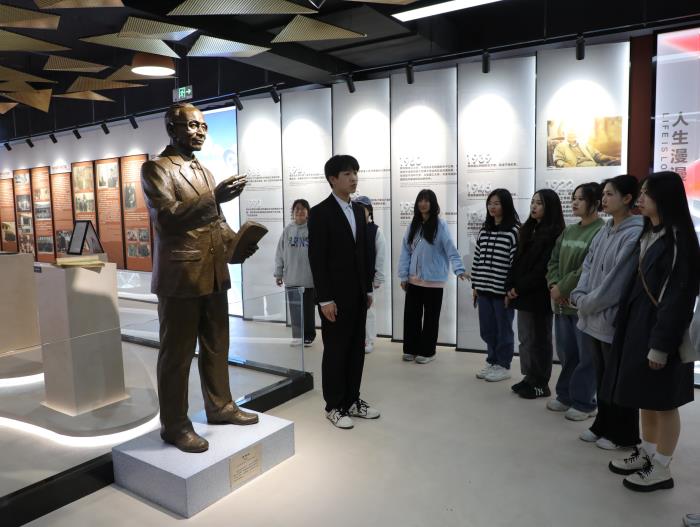 听完四位主创人介绍后,巨星馆长也给同学们分享了他对在图书馆内设置李华天纪念馆和收藏展示这三件艺术品的理解。这些代表着东软创始人,东软教育科技集团董事长总裁刘积仁老师和学校对师生的期望和勉励。期望同学们勤奋求学、矢志报国。期望老师们潜心科研、言传身教。勉励东软师生勇于探索未知的科学领域,全面提升实现自我超越。图书馆将定期举办分享会,也会主动邀请新聘教师和学生干部来纪念馆、图书馆参观学习。把李华天纪念馆作为爱国、科研、师德师风教育基地,这就是美育教育“教育之美”。