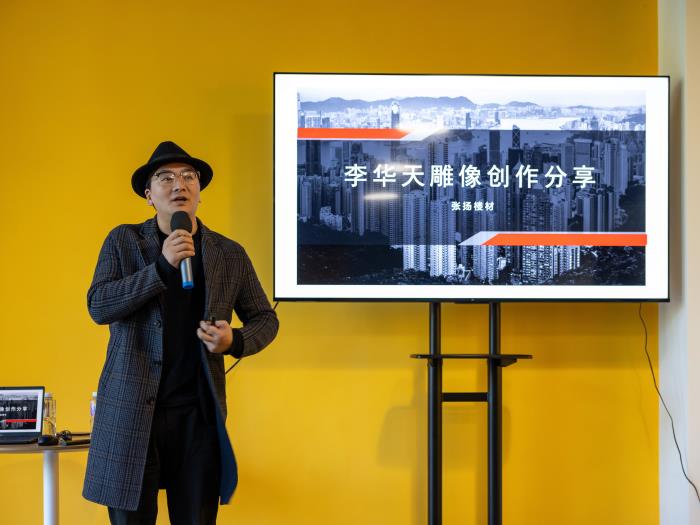 张扬楼材老师从李华天教授青年时勤学成才、立志兴邦一直讲述到李老师桃李芬芳、教泽绵长。他还介绍了《师者-李华天》铜像的铸造过程和运输安装的注意事项。他强调人像的创作首先要对主人公有非常充分的认知和感悟,只有发自内心的崇敬才能创作出传神的人物形象。