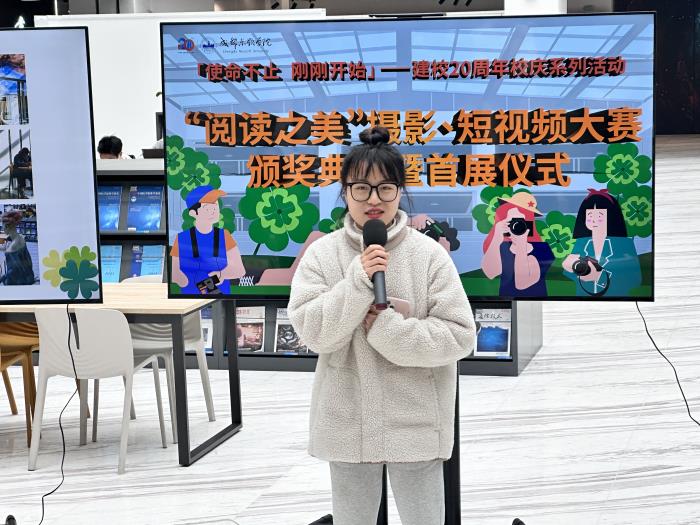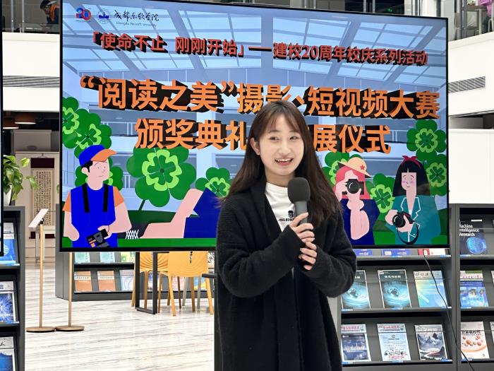 图书馆巨星馆长致辞。感谢数艺学院领导和评委老师们对本次大赛的支持与付出,赞赏参赛师生们的创意与努力,并鼓励大家以后积极参与图书馆更多的活动。