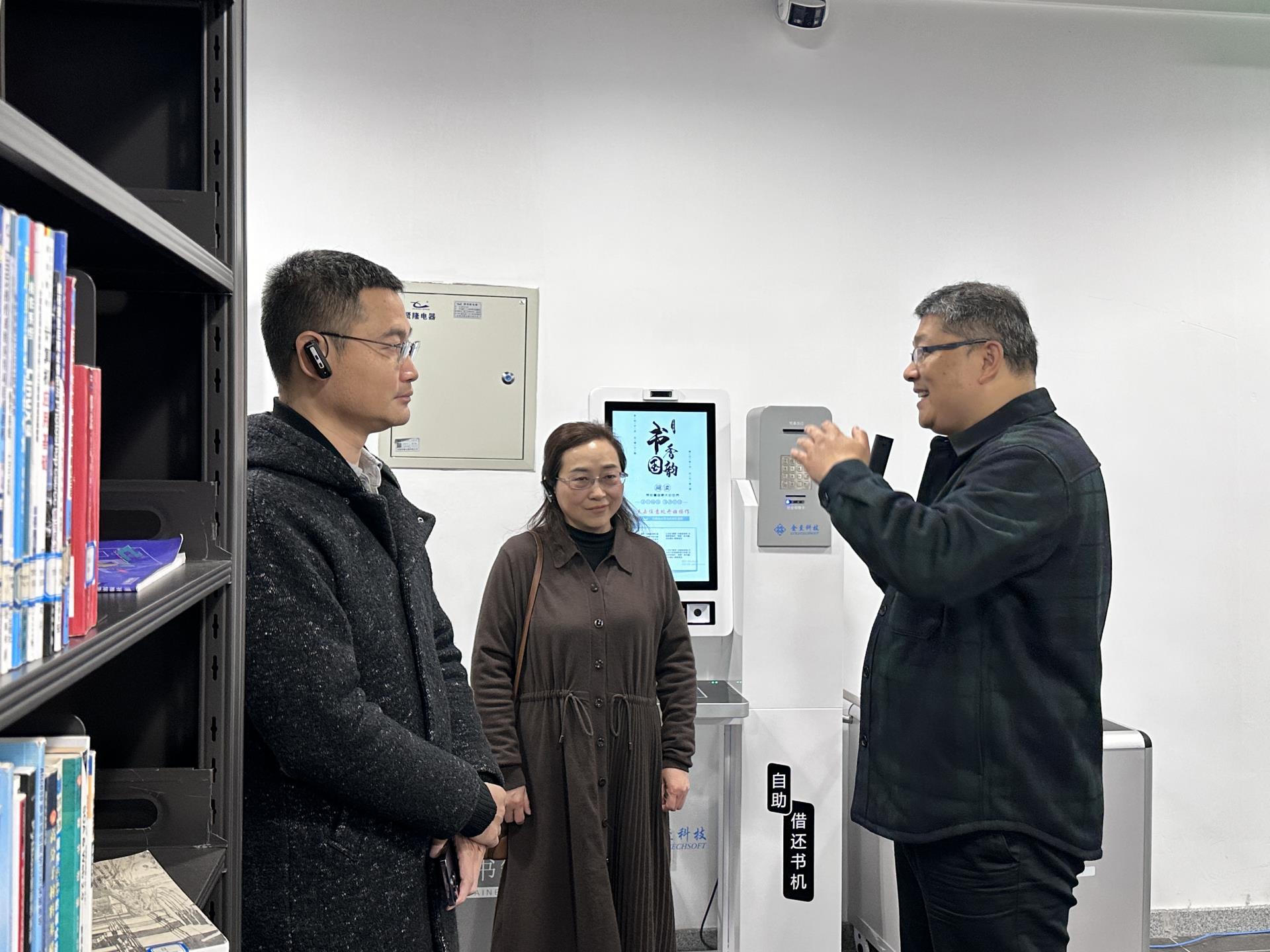 来访嘉宾参观了华天图书馆的各功能区域,巨馆长对馆内的座位预约、自助借还等功能进行了现场演示。嘉宾们对馆内的信息化建设深感兴趣。