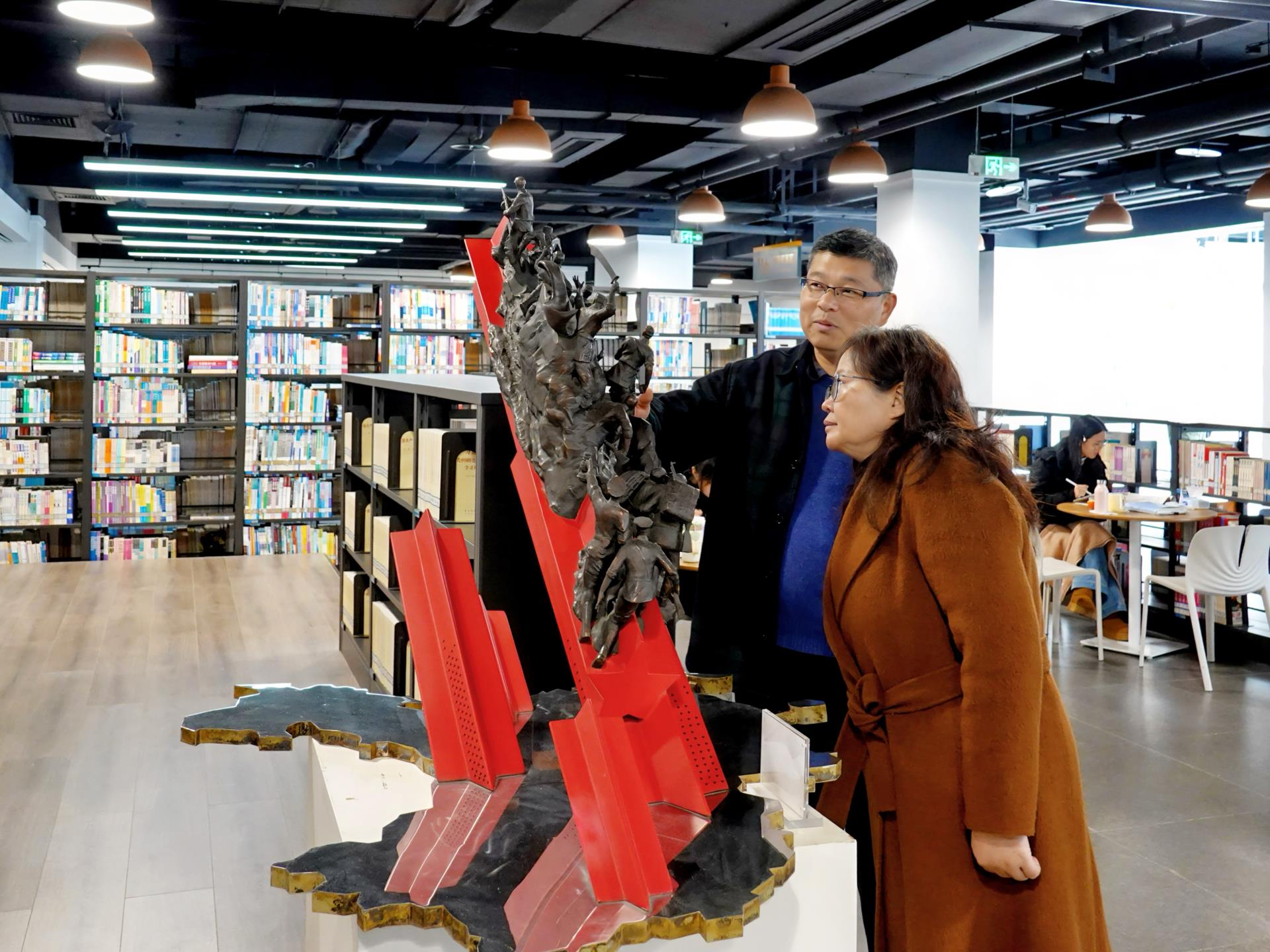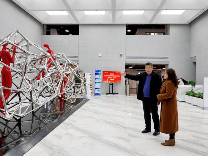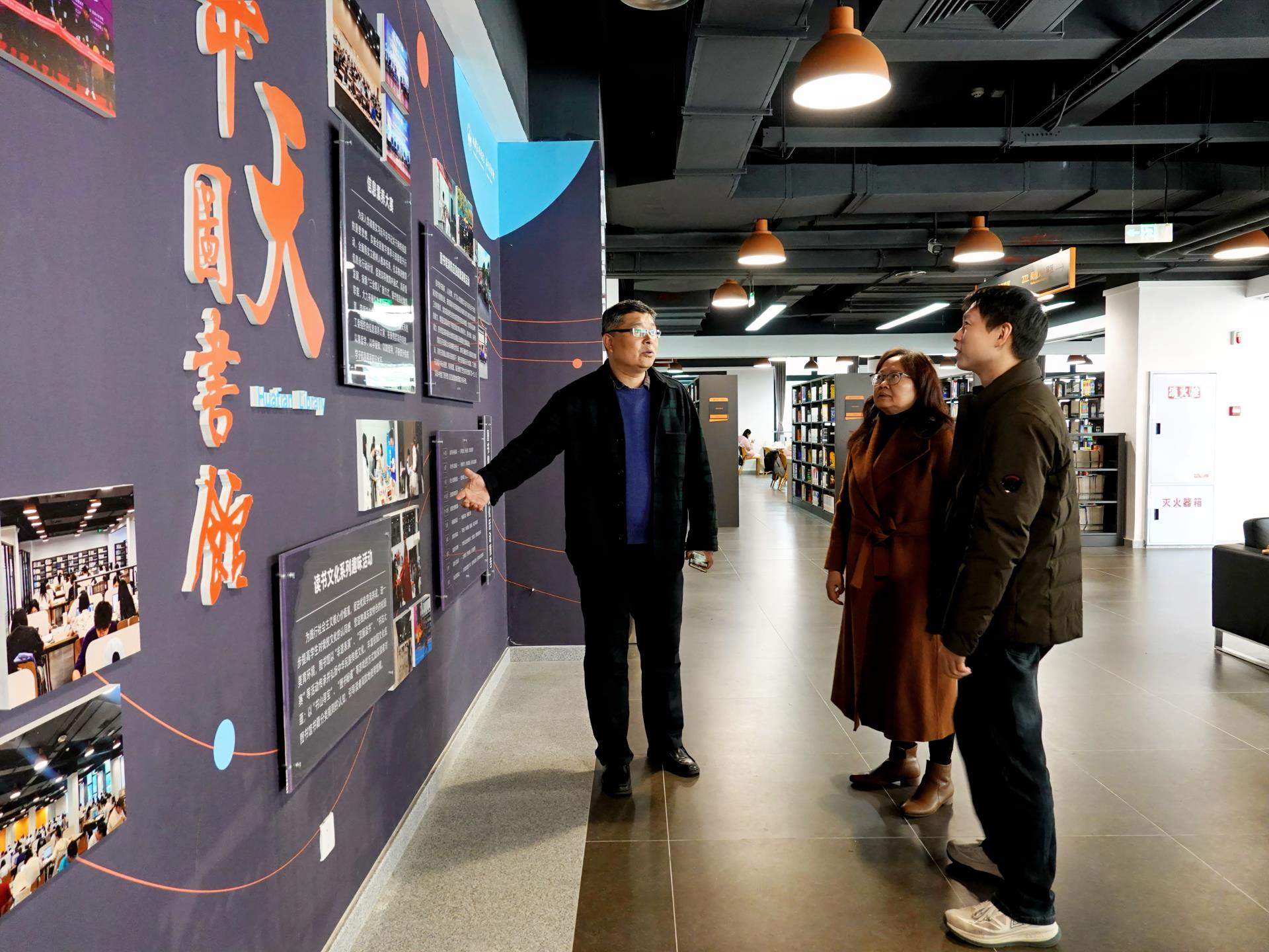 在巨星馆长的陪同下,两位专家对华天图书馆进行了全面细致的考察。重点参观了李华天纪念馆、计算机特馆、馆藏艺术品、文化展览区、党建阅读区、阅读文化活动展墙、考研学习区、小型研修室、国际报告厅、学术会议室等场地。通过实地考察,了解图书馆在信息化应用、美育功能建设以及阅读学习氛围营造等方面的实践,对图书馆在以美育人、以文化人所做的努力有了更深入的了解。