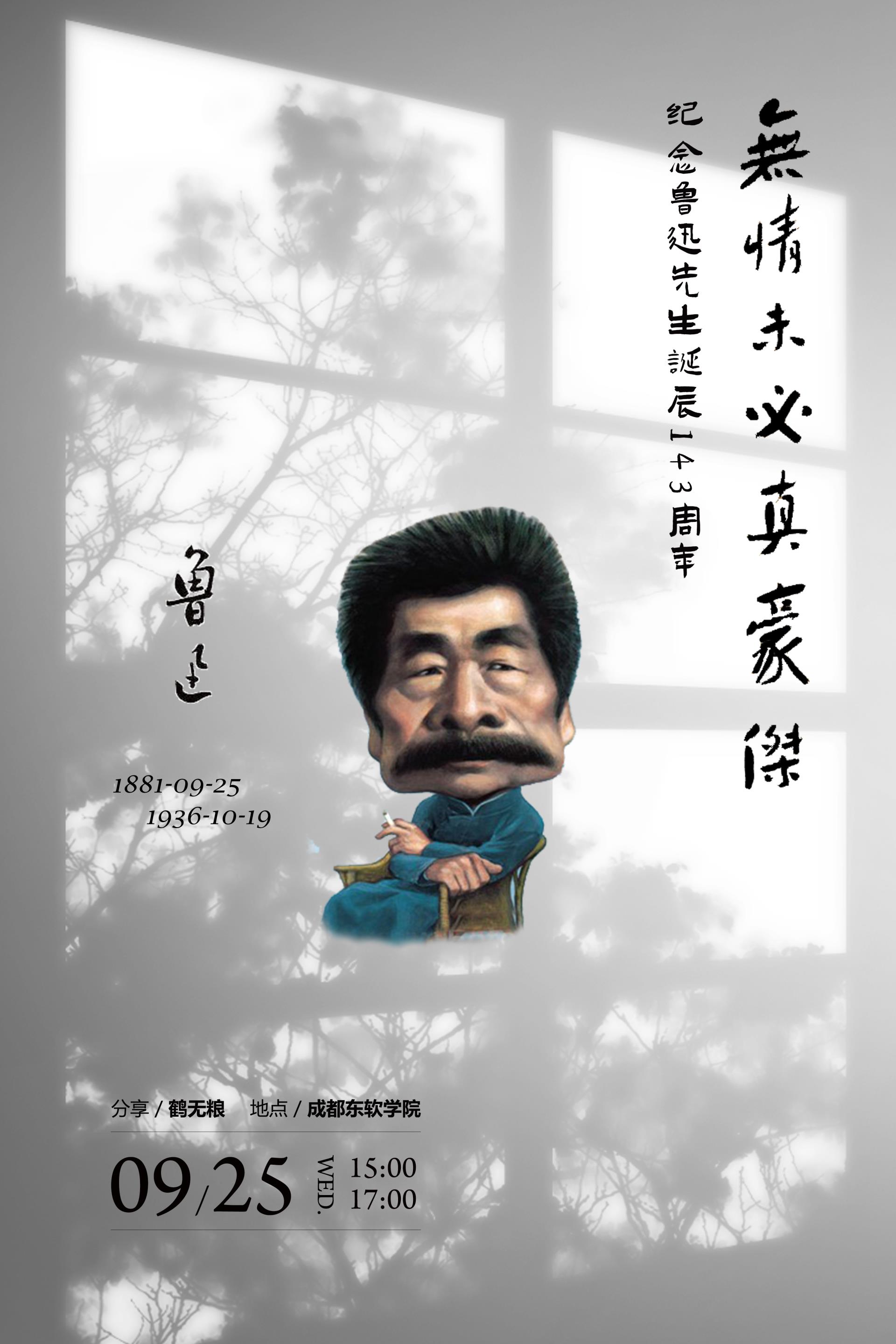 2024年9月25日是鲁迅先生诞辰143周年纪念日。作为新文化运动的先驱,著名的文学家、思想家,鲁迅先生为中国文学留下了珍贵的遗产。为此,图书馆特别邀请了80后文学爱好者、成都木心读者沙龙发起人、公众号【塔中之塔】编辑鹤无粮老师为大家解读鲁迅先生的为人为文。