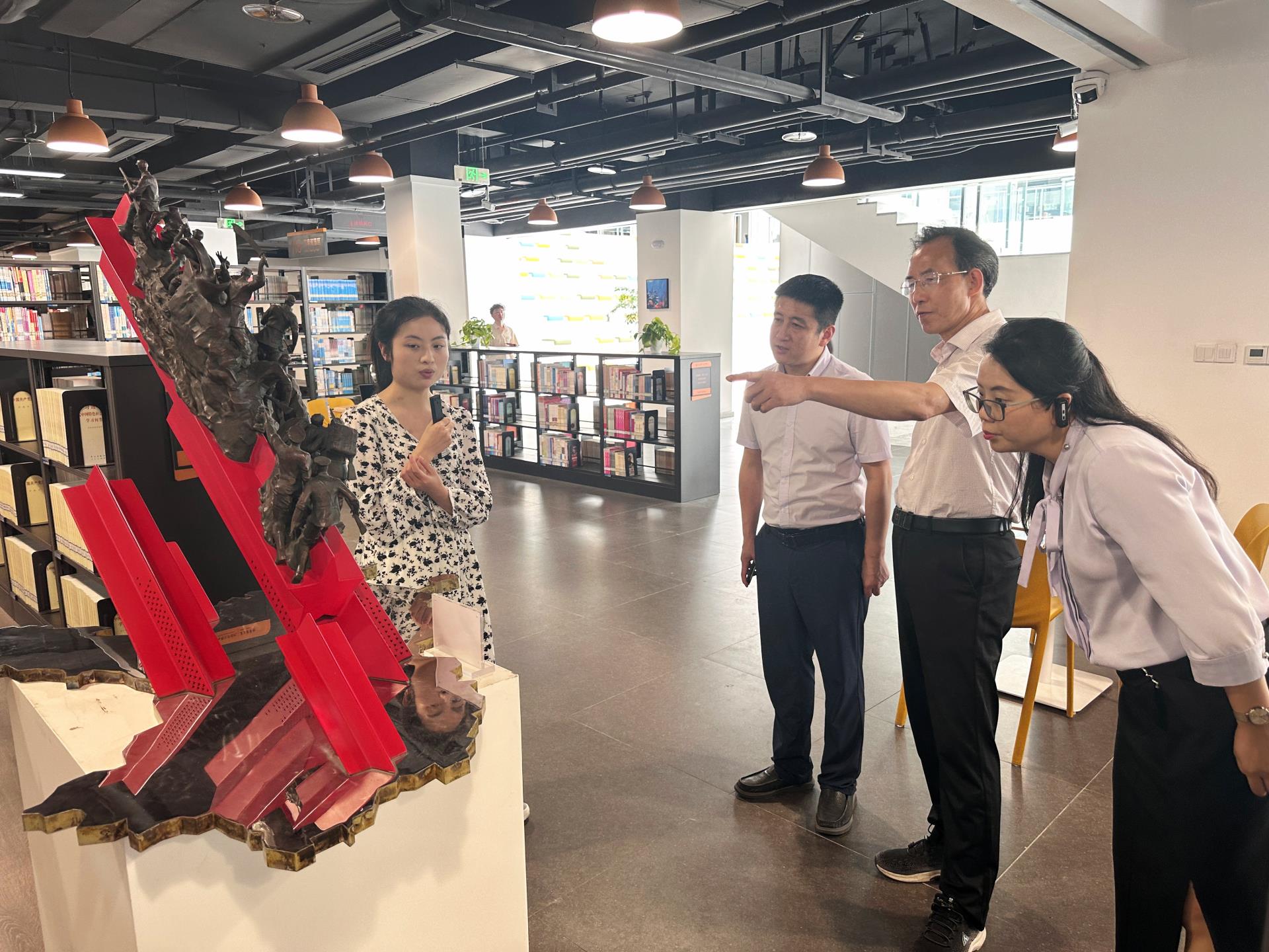 孙德刚书记一行的到访,不仅深入了解了图书馆的日常运营和服务,还重点参观了李华天纪念馆、展览区、党建阅读区等多个特色区域。
