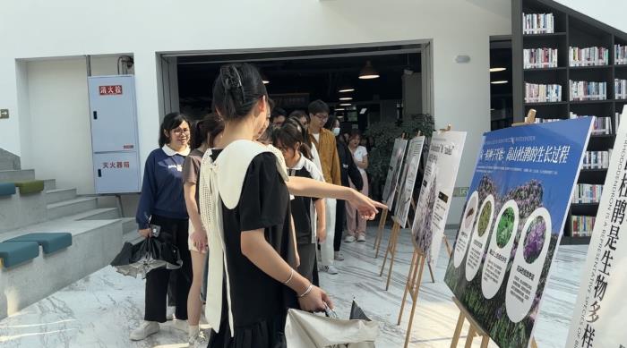 在“国际生物多样性日”当天,外国语学院英语23205和英语23206的同学们一同前来观展,了解高山杜鹃这一生物多样性代表物种的独特魅力。同学们深入了解了高山杜鹃在不同海拔和多变气候中的生长习性和形态,感受到了高山杜鹃坚韧不拔的生命力和对环境的出色适应性。