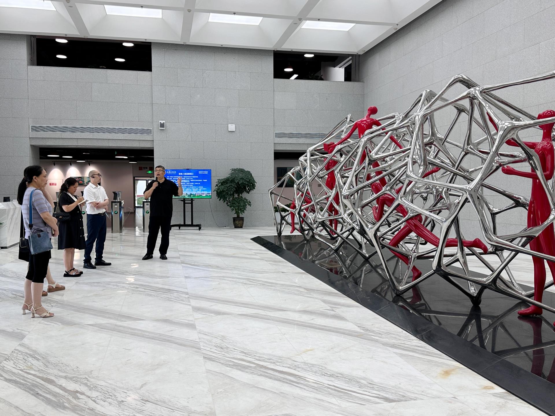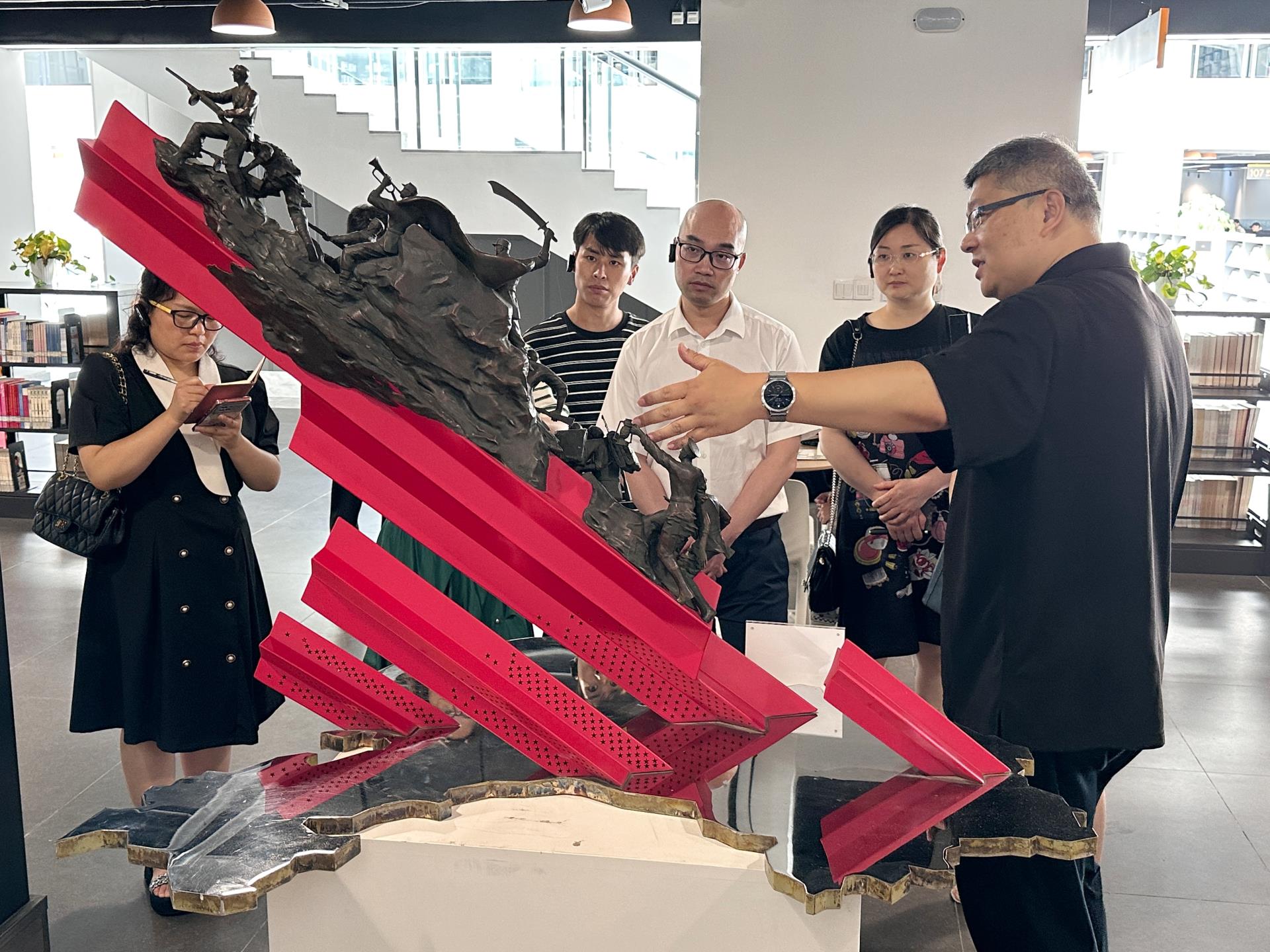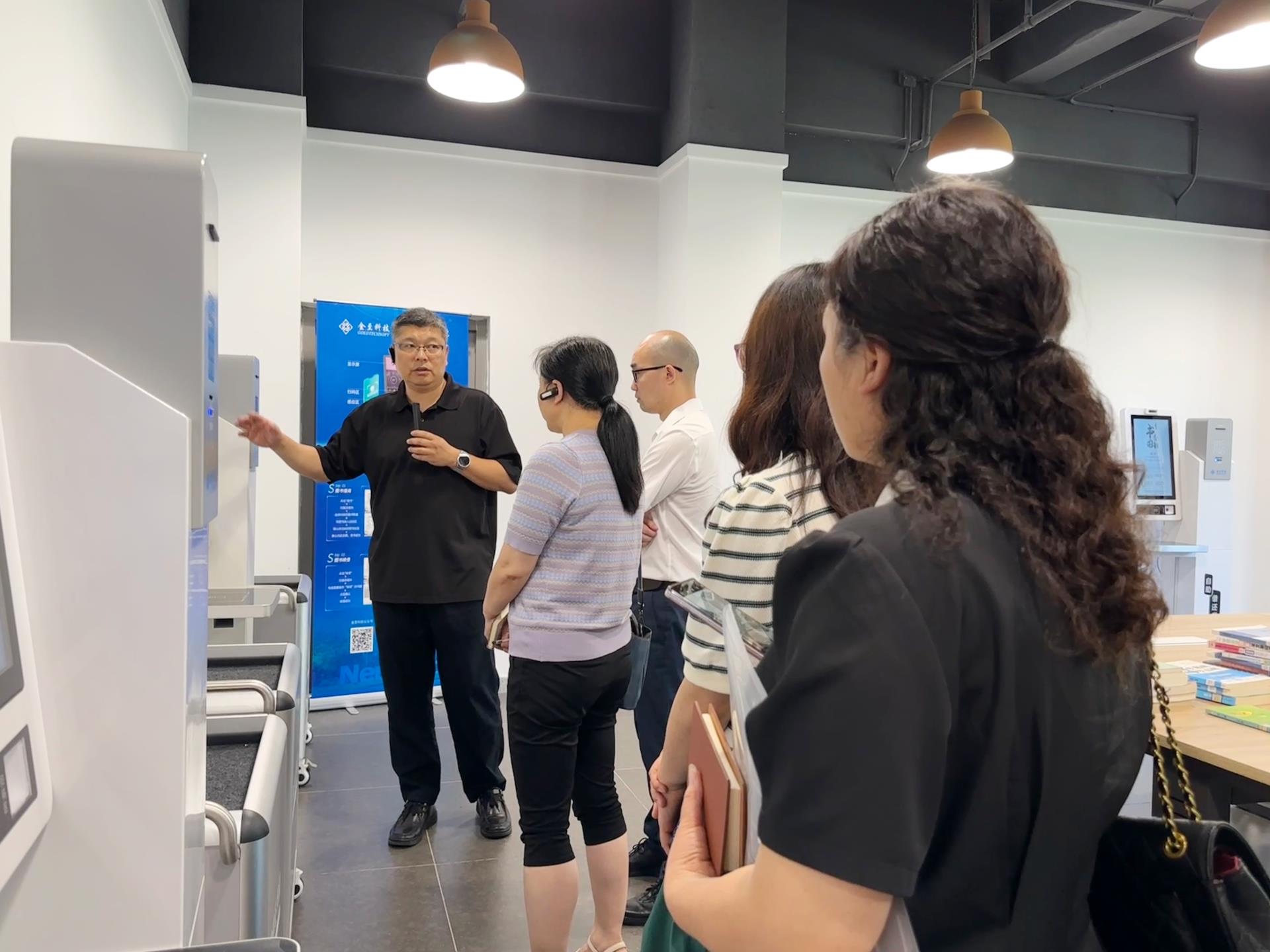 巨星馆长陪同来访嘉宾对华天图书馆进行了全面调研,参观了李华天纪念馆、自助服务区、计算机特馆、展览区、党建阅读区等各个特色区域,了解图书馆的信息化设施、家具设置、美育空间打造、文化氛围营造等情况。