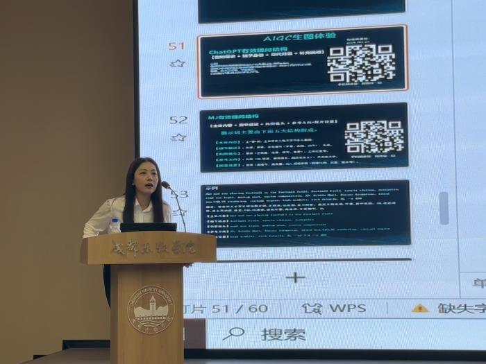 讲座上,朱美淋老师为大家介绍了AIGC绘画基础、各种AIGC绘画工具,并以“清明节海报”为例为大家进行了现场实操。讲座后期,阅途文化集团陈朝萍老师为大家详细介绍了“设计师之家数字图书馆”的各项功能。