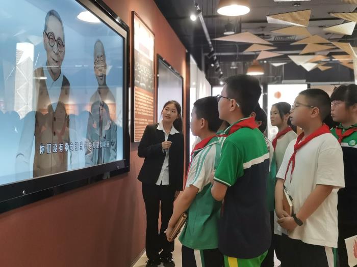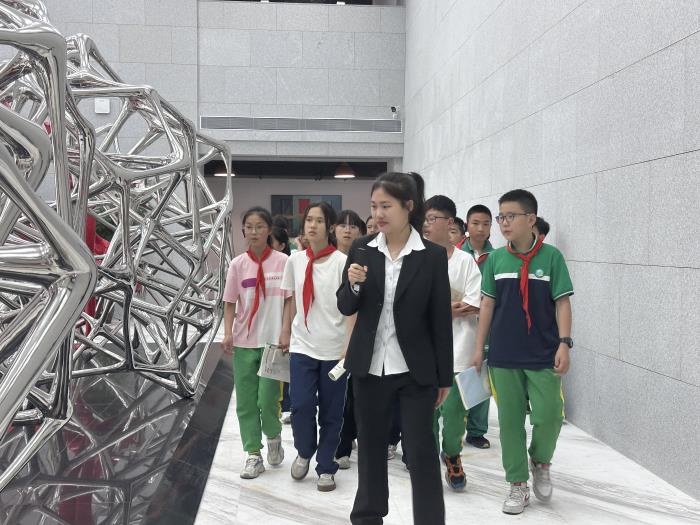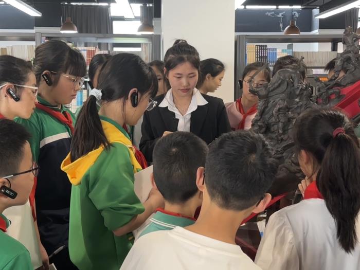 为深化我校思政教育体系,实现大中小学思政教育的无缝衔接,同时加强我校与周边中小学在党建工作上的紧密合作。5月17日下午,都江堰市七一青城山学校小升初衔接班的优秀学生代表们走进华天图书馆,共同开启了一场文化探索之旅。图书馆师生宣讲团队英语22207班陈洪同学、财务管理23210班李悦同学任此次参观活动的讲解员,带领大家领略图书馆的独特魅力。