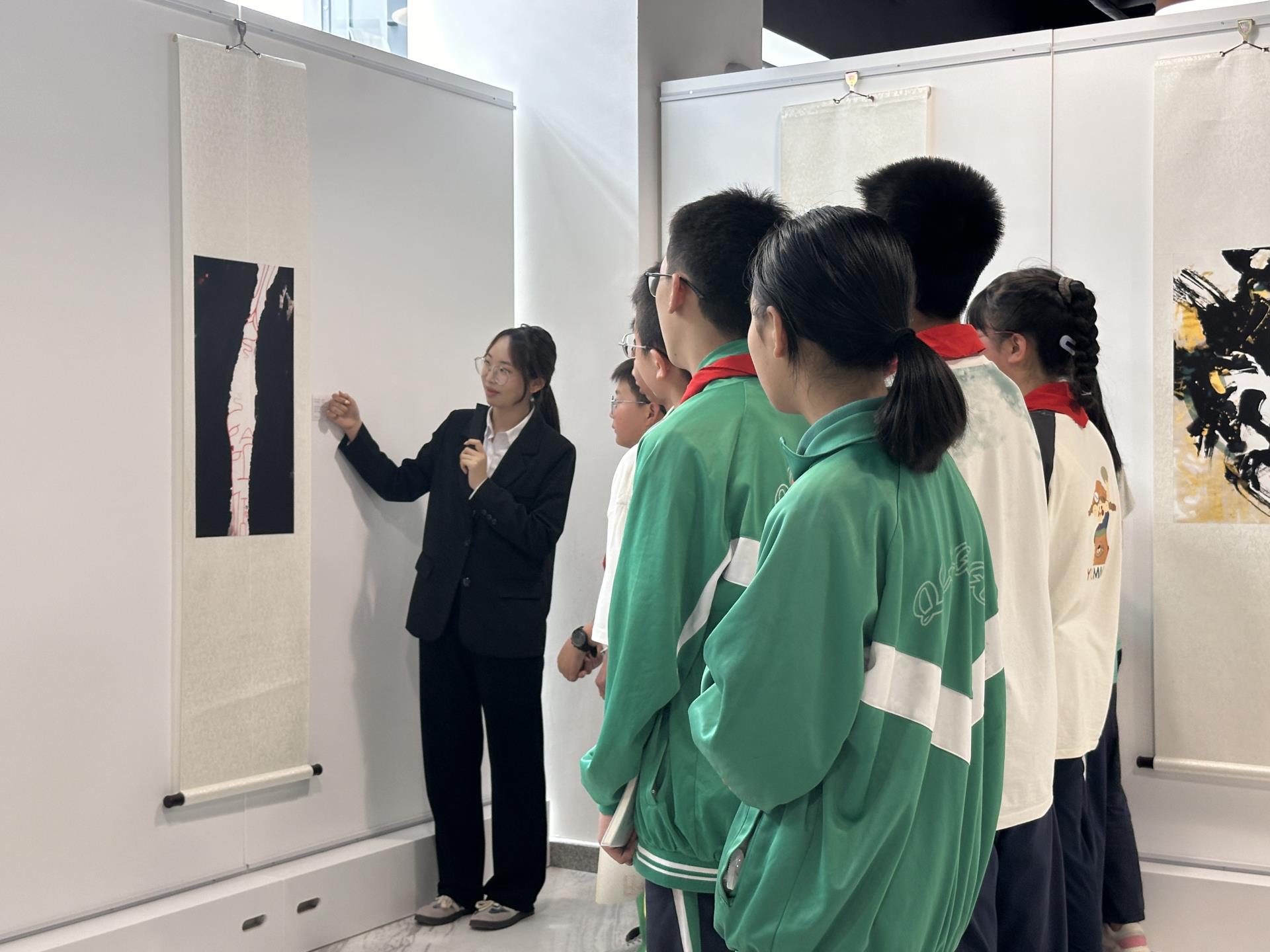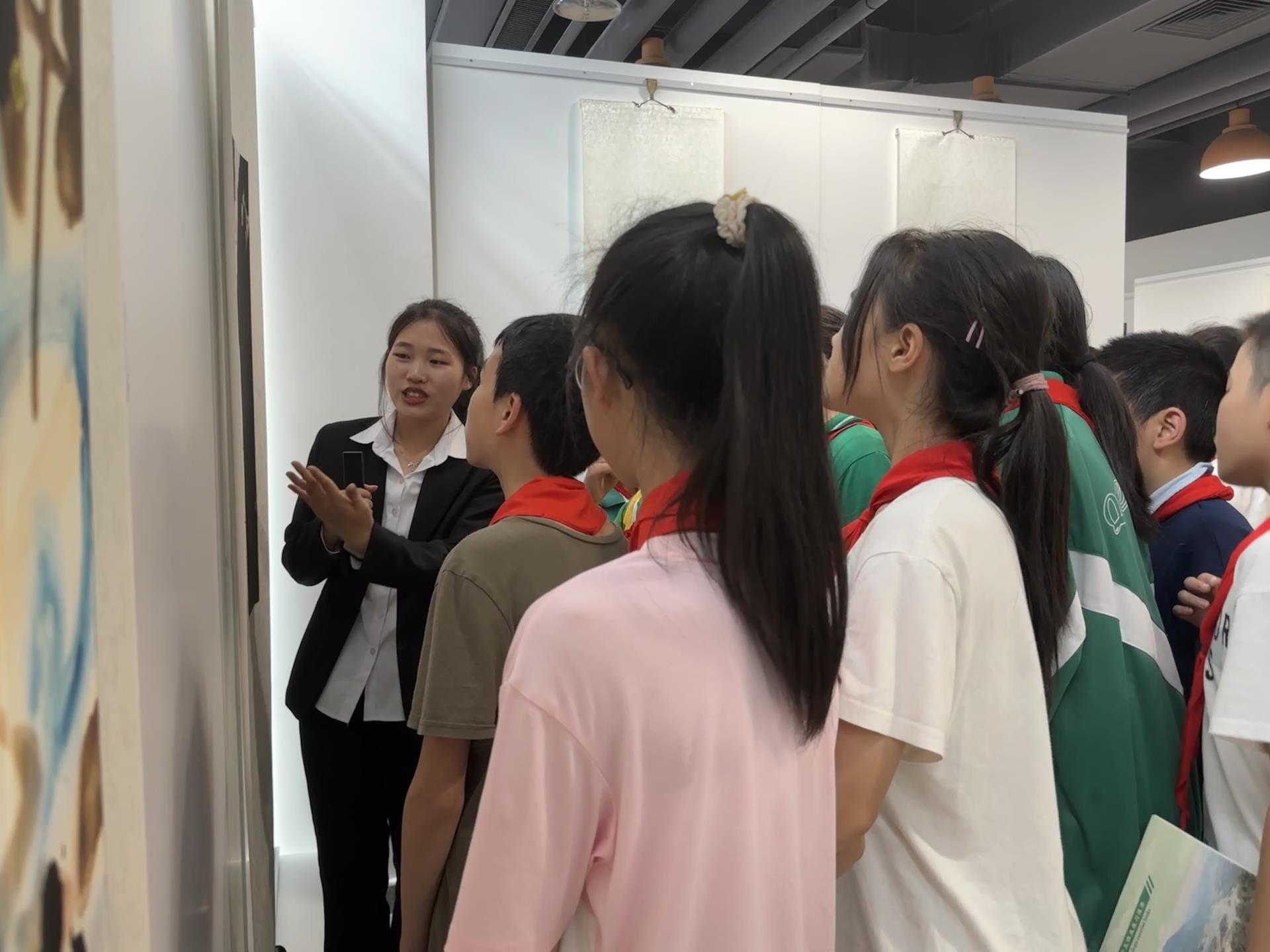 此外,同学们还参观了《超越》《探索》《青城传灯》《向前!向前!向前!》等艺术品以及正在展出的“大方無隅-王方方汉字艺术与水墨动画作品展”。