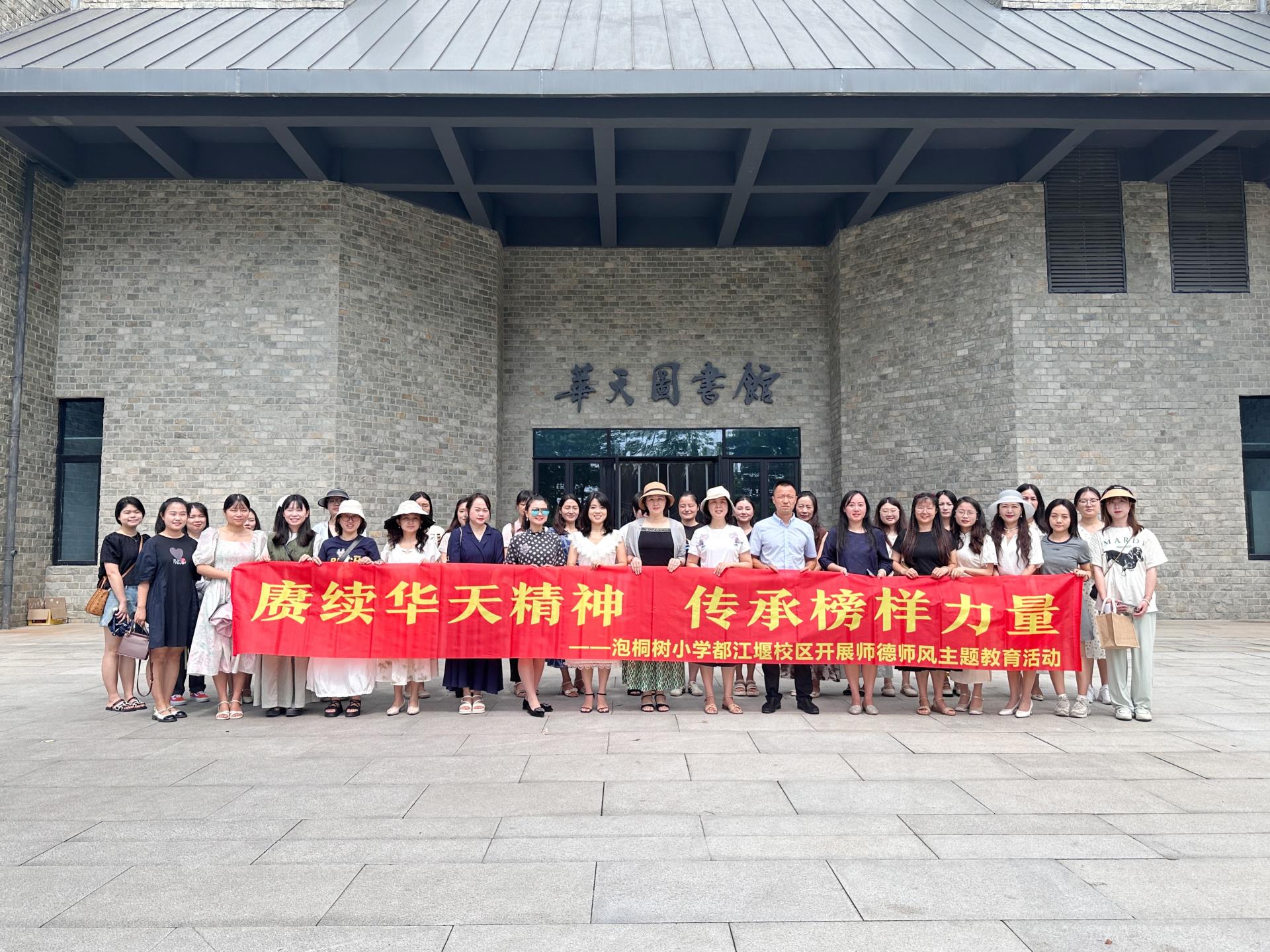 7月3日上午,华天图书馆迎来泡桐树小学都江堰校区全体班主任教师的到访,开展了一场以“赓续华天精神,传承榜样力量”为主题的教育家精神学习、师德师风建设活动。