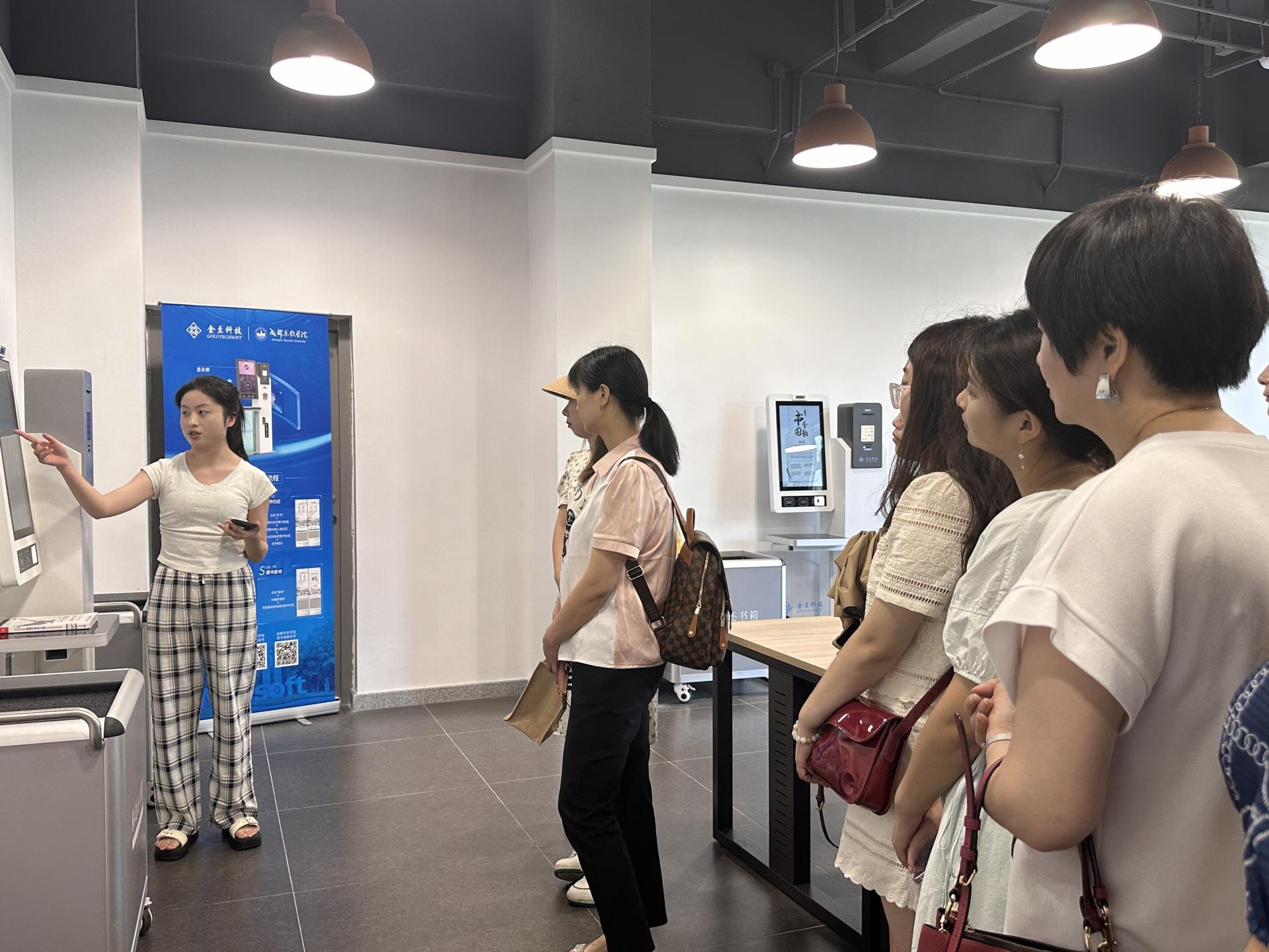 老师们还参观了计算机特馆、自助服务区、党建阅读区等特色区域。这些特色区域的展示,不仅体现了图书馆在信息技术应用、服务创新以及文化传承方面所做的努力,更让老师们亲身体验到了图书馆作为知识海洋、思想高地的独特魅力。