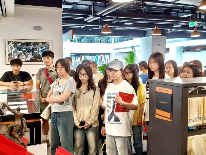活动特别设置党建阅读区参观环节。同学们了解了马克思列宁主义、毛泽东思想等重要理论著作,并聆听了数艺学院张扬楼材老师的雕塑《向前!向前!向前!的创作背景,深刻感悟革命先辈艰苦奋斗的精神,坚定了新时代青年的使命担当。