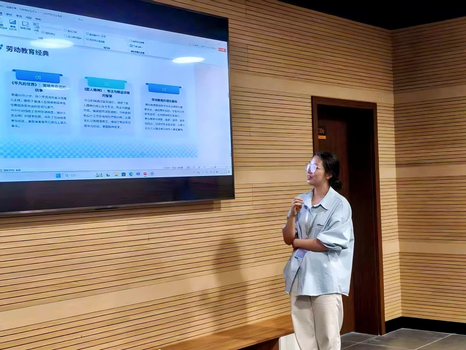 活动在图书馆学生助理团队姜锐同学的开场中拉开帷幕。她从劳动作为“社会进步的基石”切入,结合政策背景与活动目标,阐述了劳动教育对大学生全面发展的重要性。在书籍分享环节,同学们从《平凡的世界》《扫地出门》等经典著作中领悟劳动与命运抗争的力量,关注劳动者权益;通过《造物有灵且美》《匠人精神》等书籍,感受创新劳动与工匠精神的魅力;而《怦然心动的人生整理魔法》《四季厨房》等生活美学读物,则展现了劳动在提升生活品质、传承文化中的独特作用。