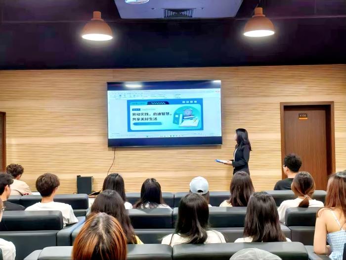 互动环节气氛热烈,同学们踊跃分享劳动金句、代表人物及个人劳动故事。主持人姜锐以童年翻土误将蚯蚓当作“土笋”的趣事,引发大家对劳动中收获知识与成长的共鸣。校园创新创业、公益劳动及乡村振兴中的青年案例,进一步深化了同学们对劳动实践与社会责任的理解。