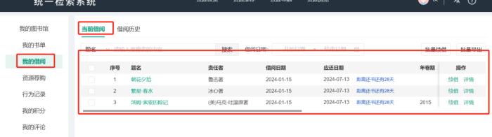 (3)查询欠书:点击“我的借阅”-点击“当前借阅”-查看本人欠书。