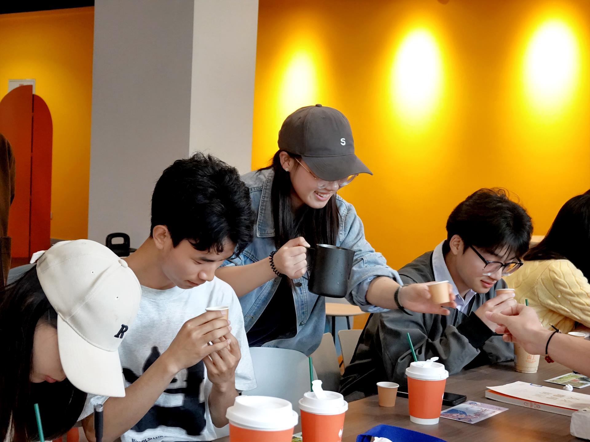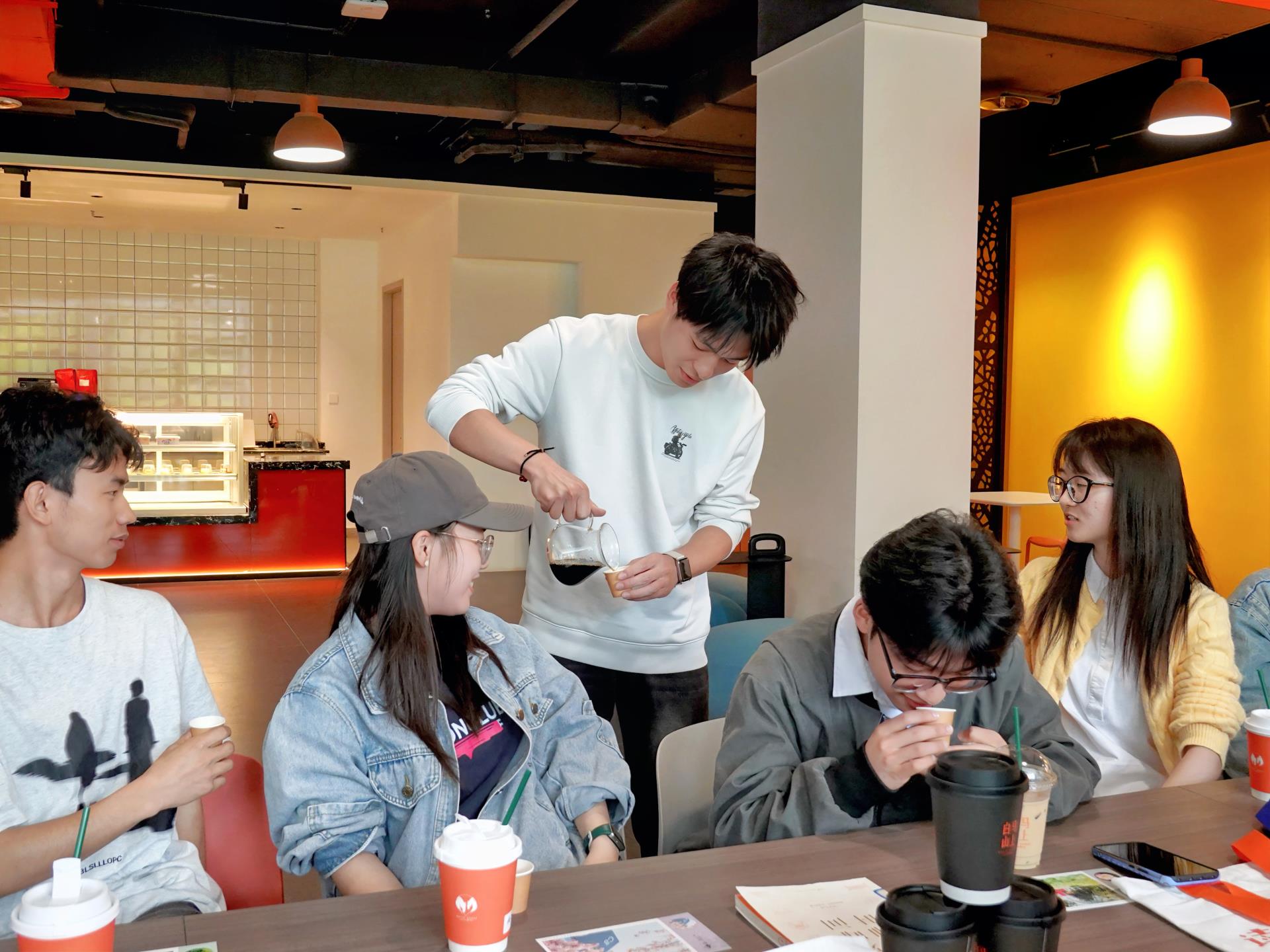 2025年4月29日,由图书馆主办的“以‘咖’会友,‘读’具匠心”咖啡文化沙龙活动在白马山上咖啡厅举行,图书馆梅珊老师担任此次活动主持人。本次活动将咖啡文化与阅读推广相结合,通过知识分享、互动体验和图书推荐等形式,为同学们打造了一场兼具趣味性与文化深度的沙龙活动。