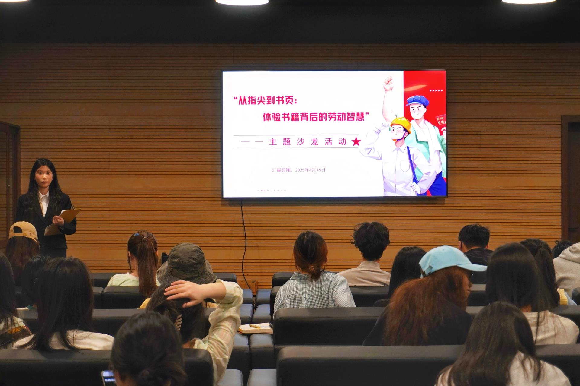 2025年4月16日,由图书馆主办的“从指尖到书页:体验书籍背后的劳动智慧”主题沙龙活动在A11华天图书馆108影音资料室成功举办。外国语学院英语24204班全体同学齐聚一堂,共同探索书籍背后那些鲜为人知的劳动智慧
