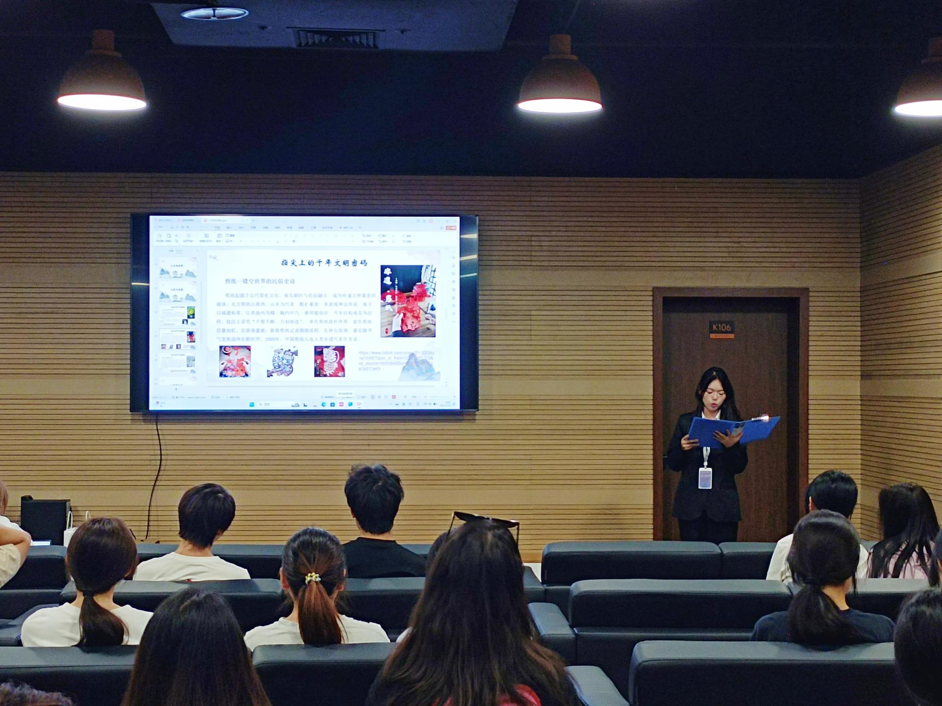 活动在学生助理团队燕诗桐同学的开场中拉开帷幕。她从“指尖方寸间的华夏文明”切入,阐述了非遗手工艺作为文化活化石的价值,以及工匠精神在当代的意义。随后,同学们共同观看了三部非遗主题影片:展现竹编“以柔化刚”智慧的《非遗微纪录片:竹编,一片竹林的诗意》、刻画剪纸匠人“指尖定力”的《纸上生花:原来中国剪纸的美是“千刻不落,万剪不断”》,以及诠释刺绣“万针求极致”美学的《汉派非遗青年说|绣在江湖》。影片以生动的影像语言,将非遗技艺的细腻与匠人的执着娓娓道来,令在场同学沉浸其中。