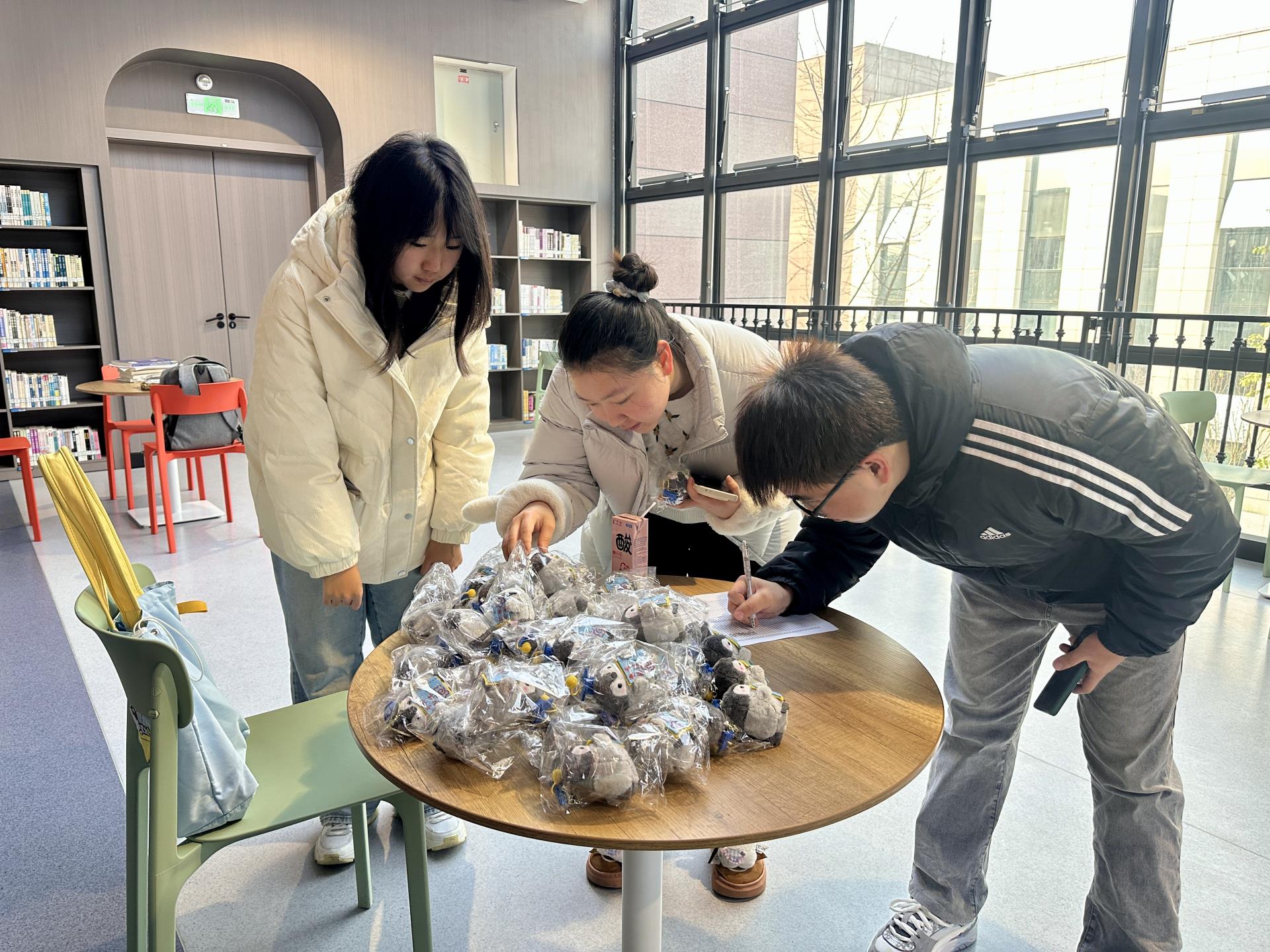 同学们依次接过这份寓意美好的礼物。每一份幸运物背后,都是一份对未来的期待,也是一份对梦想的坚守。图书馆不仅是知识的殿堂、学习的净土,更是大家心灵上的“陪伴者”与“支持者”。