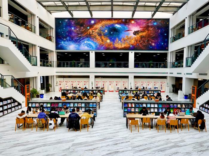 图书馆不断优化馆内环境、功能布局及配套设施。自主研发了读者服务管理系统、读者积分管理系统,增加并优化了人脸识别、自助借还、座位预约、数据赋能等现代化服务,将藏书、借阅、学习、展览、交流等功能“空间一体化”。同时主动将服务延伸至一线教学,馆员走进课堂,为学生讲解专业信息检索、学术资源利用、学术规范与写作等,提升学生的信息获取和学术研究能力。