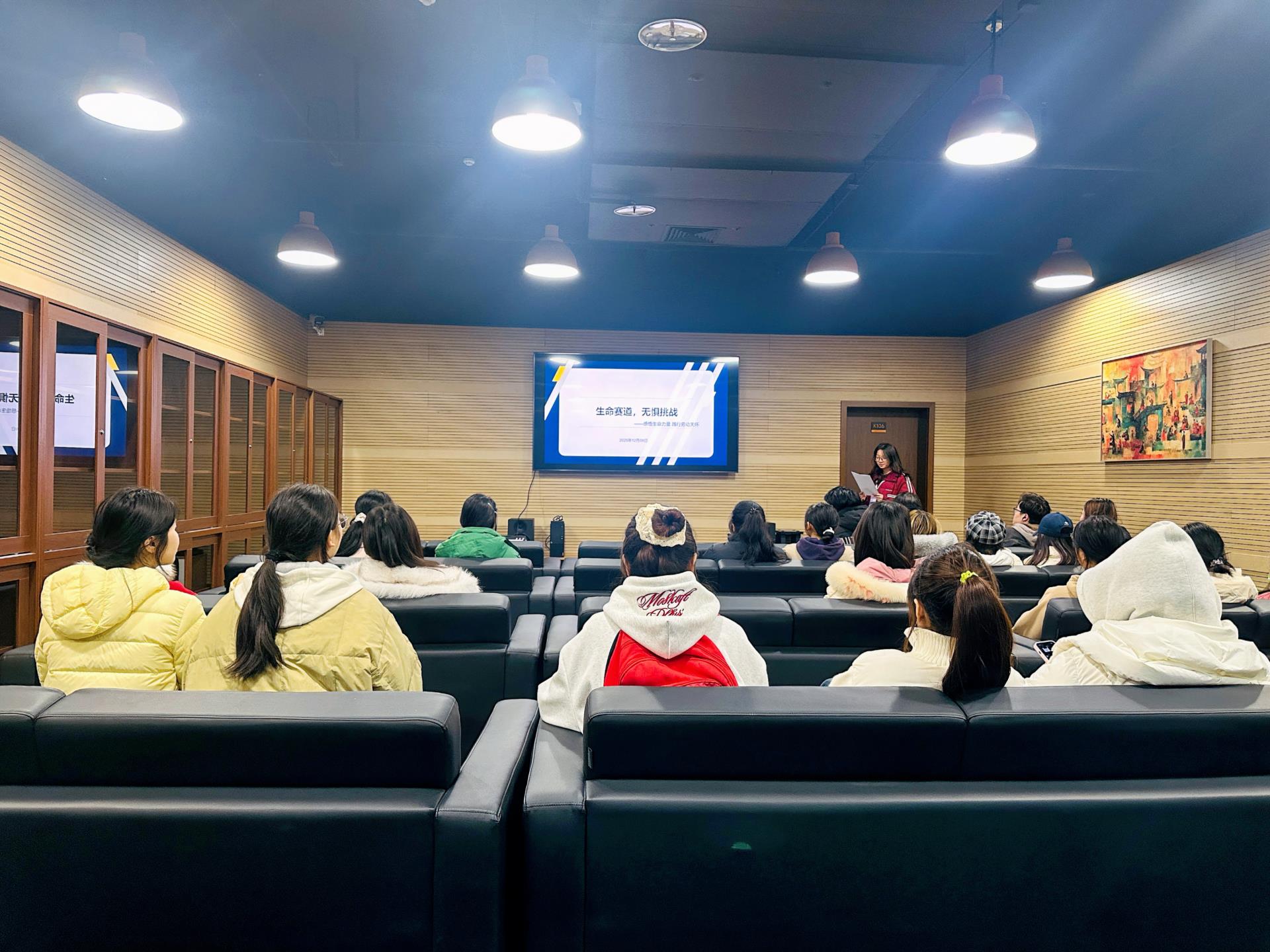 在快节奏、高强度的当代校园生活中,我们是否常常沉浸于个人的学业与成长,而忽略了生命更广阔的维度?12月9日下午,图书馆在108影音资料室举办了一场以“感悟生命力量,践行劳动关怀”为主题的沙龙活动,英语25206班全体同学共同参与,完成了一次从“感动”到“行动”的深度对话。