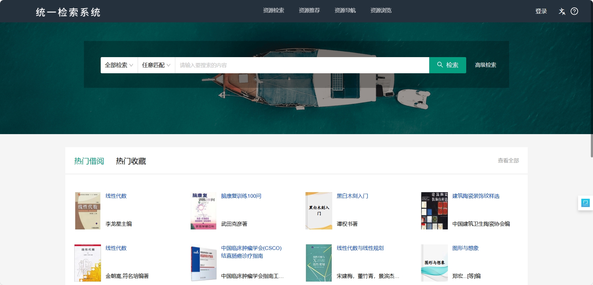 检索操作:在统一搜索框输入关键词,系统自动匹配书名、作者、主题词等字段,支持高级检索。