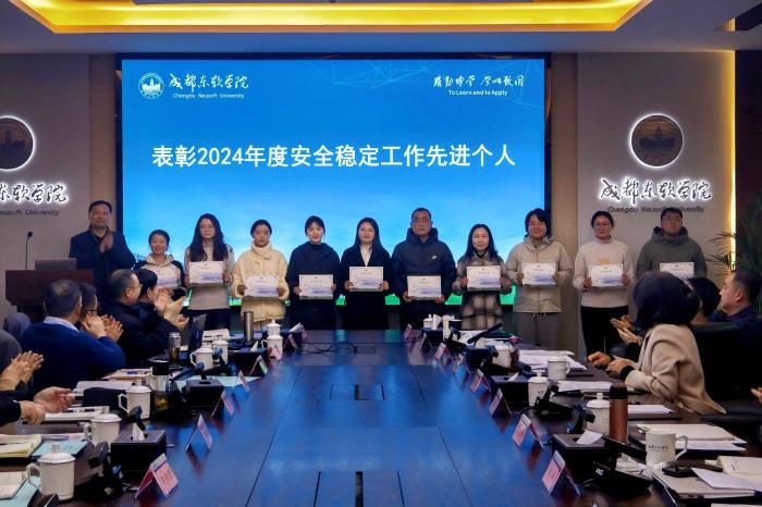 巨馆长在会议上祝贺彭博老师荣获学校2024年安全稳定工作先进个人荣誉。这是彭老师个人荣誉也是图书馆集体荣誉,是大家共同努力的成果。勉励大家再接再厉,重视安全稳定工作。