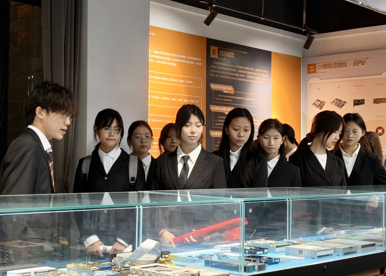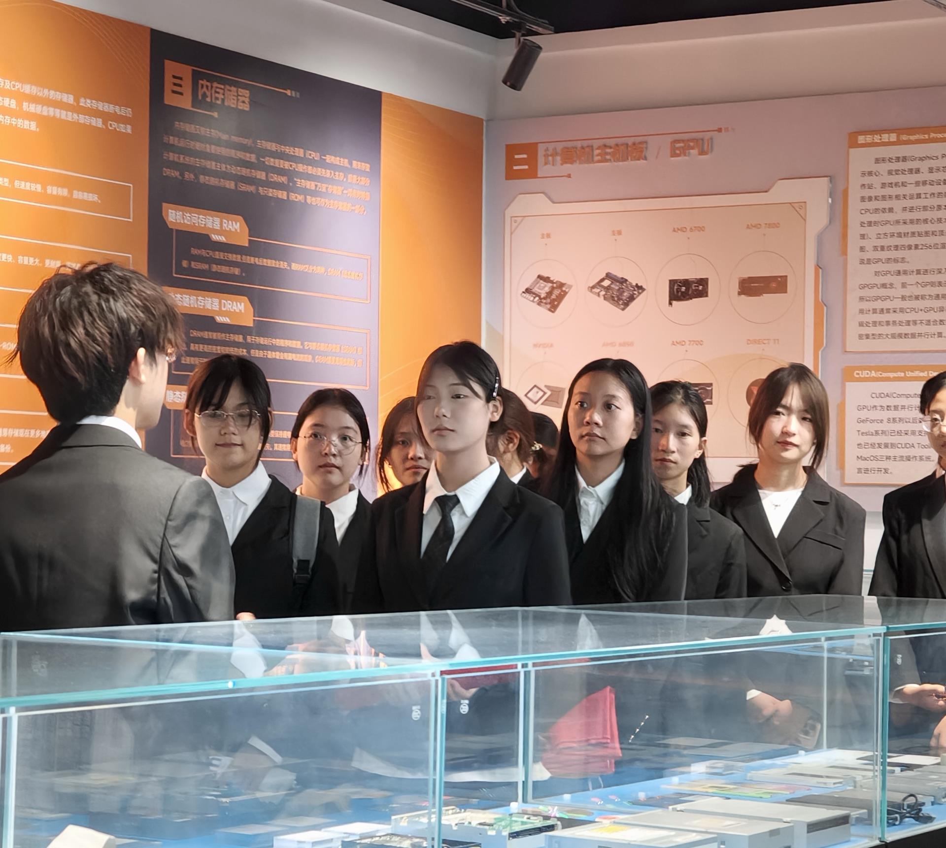 在独具特色的计算机特馆,那条贯穿始终的“时间轴”仿佛一条科技长河。从古老的计算尺到现在的芯片,每一件展品都是一个时代的坐标,清晰地勾勒出人类智慧的演进轨迹。华天图书馆在此刻,化身为一部立体的、可触摸的“科技史教科书”,让数智学院的同学们在追溯学科本源的过程中,不仅深化了专业认知,更激发了“以史为鉴、开创未来”的内生动力与创新激情。