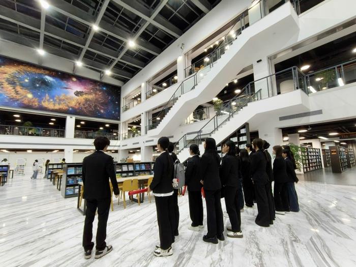 自助服务区、展览区等的探访,让同学们亲眼见证了图书馆从传统“藏书楼”向现代化“智慧知识共同体”的转型。这些功能区是图书馆服务理念的具象呈现——我们致力于打破知识的壁垒,通过技术融合与模式创新,为师生提供更开放、更便捷、更具交互性的学习体验。