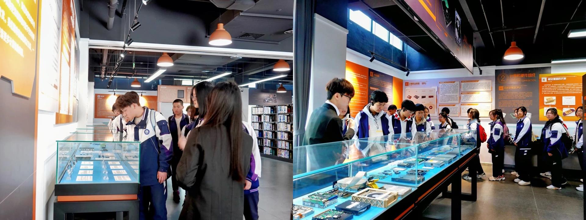 作为一所集现代化、信息化、人文化于一体的高校图书馆,华天图书馆向来访学生展示了其独特魅力。在图书馆学生助理团队讲解员的引导下,同学们参观了李华天纪念馆、计算机特馆、自助服务区、阶梯阅读区、党建阅读区等多个特色功能区域。通过实地参观,大家了解了图书馆的多元化服务体系,切身感受了大学图书馆浓厚的学习氛围和人文底蕴。