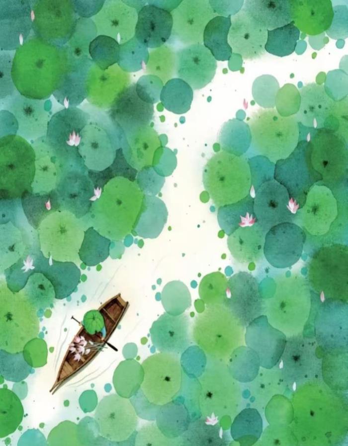 小娃撑小艇,偷采白莲回。