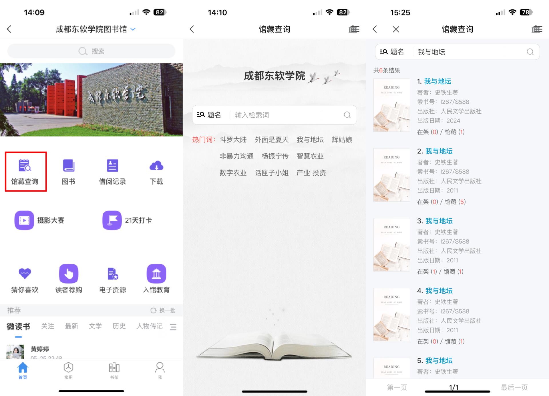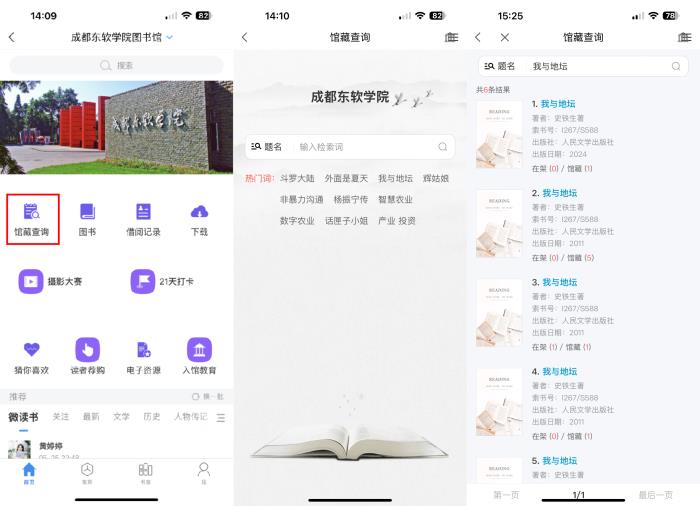 馆藏查询:一键搜索馆藏纸质图书,状态信息实时掌握。