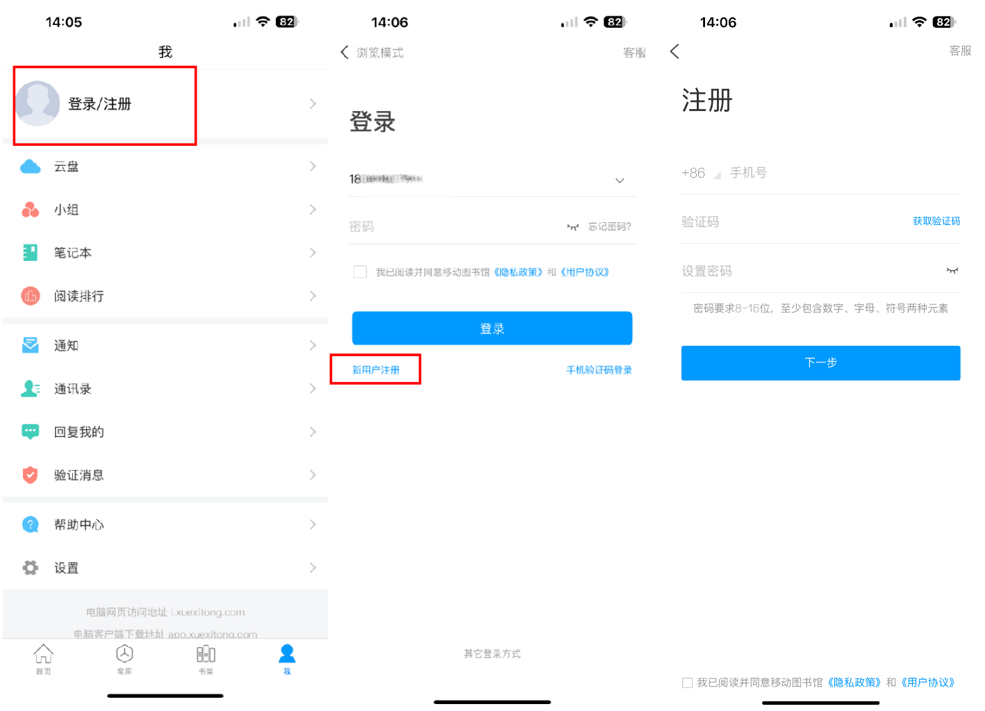 打开超星移动图书馆,点击右下角“我”—“新用户注册”—“手机号验证码注册”。
